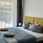 Das Apartment verfügt auch über eine voll ausgestattete Küchenzeile mit allen notwendigen Annehmlichkeiten. Das 1-Zimmer-Apartment ist nur wenige Gehminuten entfernt von der Bushaltestelle Fay Andras utca. Ein Außenpool steht den Gästen zur Verfügung.